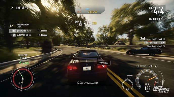 During one head-to-head race while I was on the Racer side of things, I was firmly in the lead, only to come around a hairpin and catch a cop's attention. This added a snag in my race because the best line was no longer an option. Cops have EMP and other goodies to force you off the road, so your best bet is to stick to turns and hidden paths. It made a relatively simple race much harder, but when I won and lost the cop, it felt amazing.